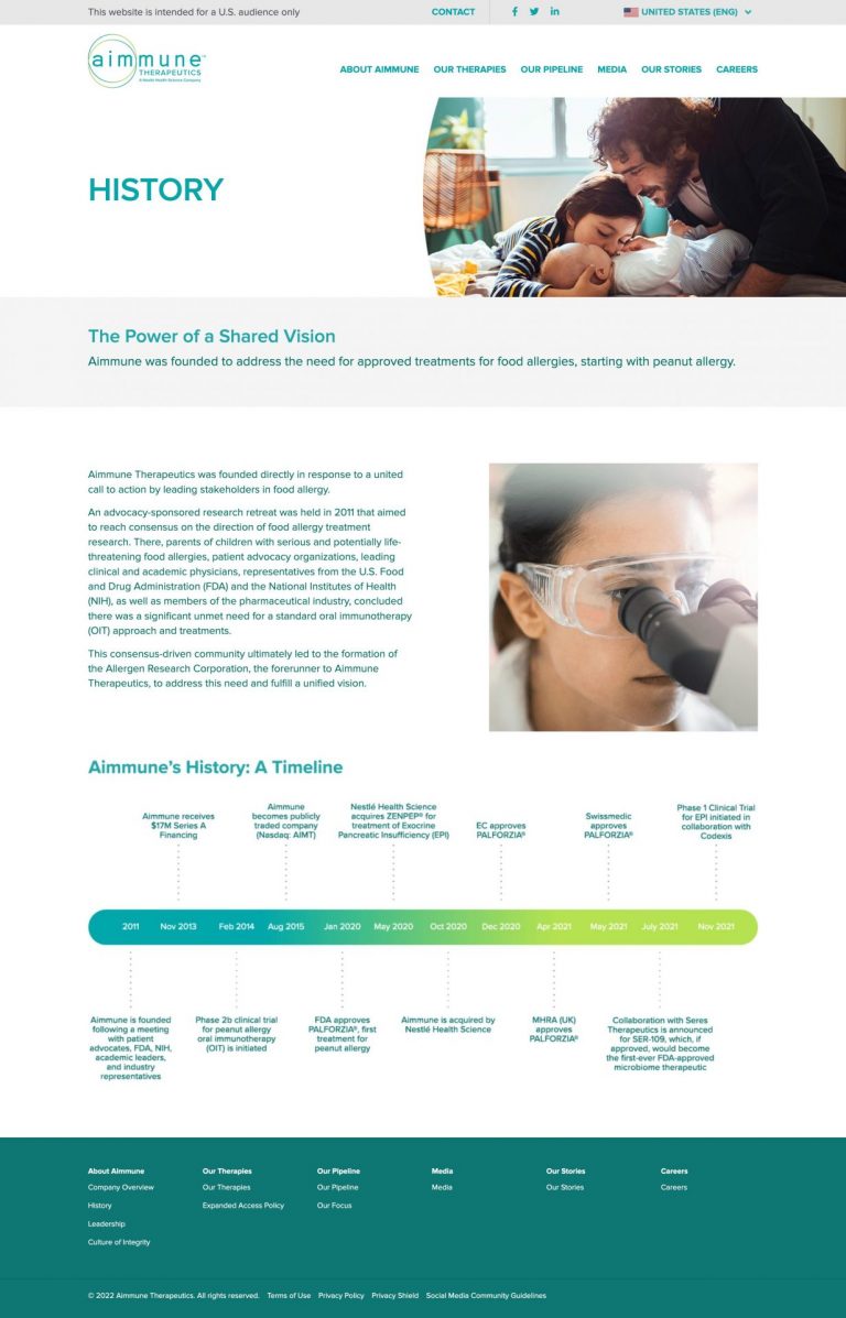 We worked with Aimmune on a soup-to-nuts branding assignment that included naming the company and developing the entire identity system all the way through the launch of the company’s website.